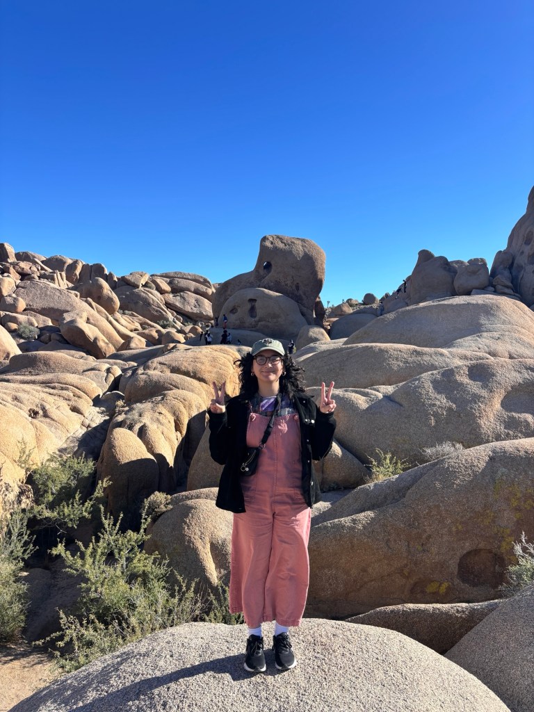 I went to Joshua Tree with my sister’s college friend who is now my friend for a night. We stopped in Palm Springs on the way and I really liked the vibe. We glamped in an A frame cabin under the stars/clouds in the cold and made grilled cheese with soup. The next day we moseyed around the national park and made our way home.